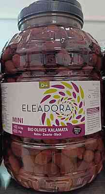 ELEADORA KALAMATA - PETITES - OLIVES NOIRES, dénoyautées, 5,1 kg/3 kg égoutté biologique, BE-BIO-02
