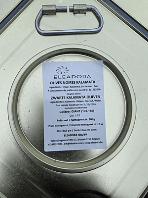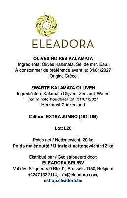 ELEADORA KALAMATA OLIVES NOIRES, GIANT 141-160, 12 kg égoutté