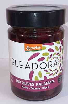 ELEADORA DEMETER KALAMATA OLIVES NOIRES, dénoyautées, JUMBO 181-200, 320g/200g égoutté biologique, BE-BIO-02