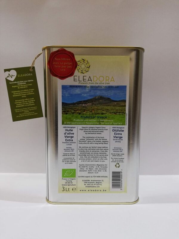 ELEADORA POLYPHÉNOLS Huile d'olive vierge extra, 3 Lt biologique, BE-BIO-02